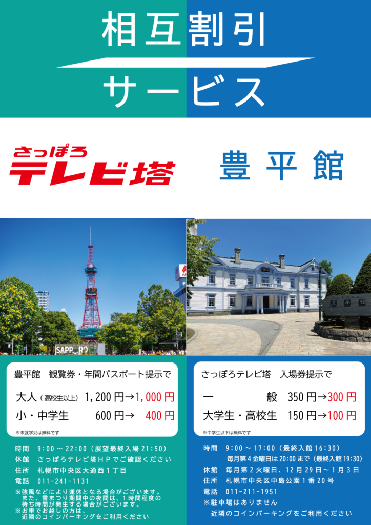 2026年1月4日より、さっぽろテレビ塔との相互割引サービスが始まりました。
