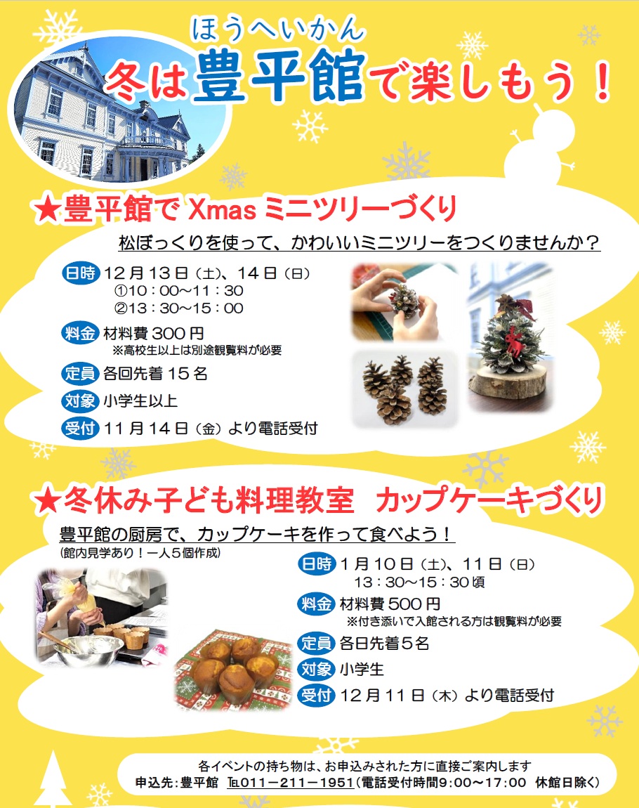 豊平館では、今年の年末年始に、体験イベントを開催します。